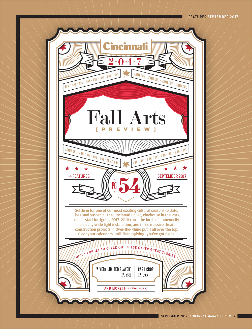 Illustration for the table of contents page of the September 2017 issue of Cincinnati Magazine.