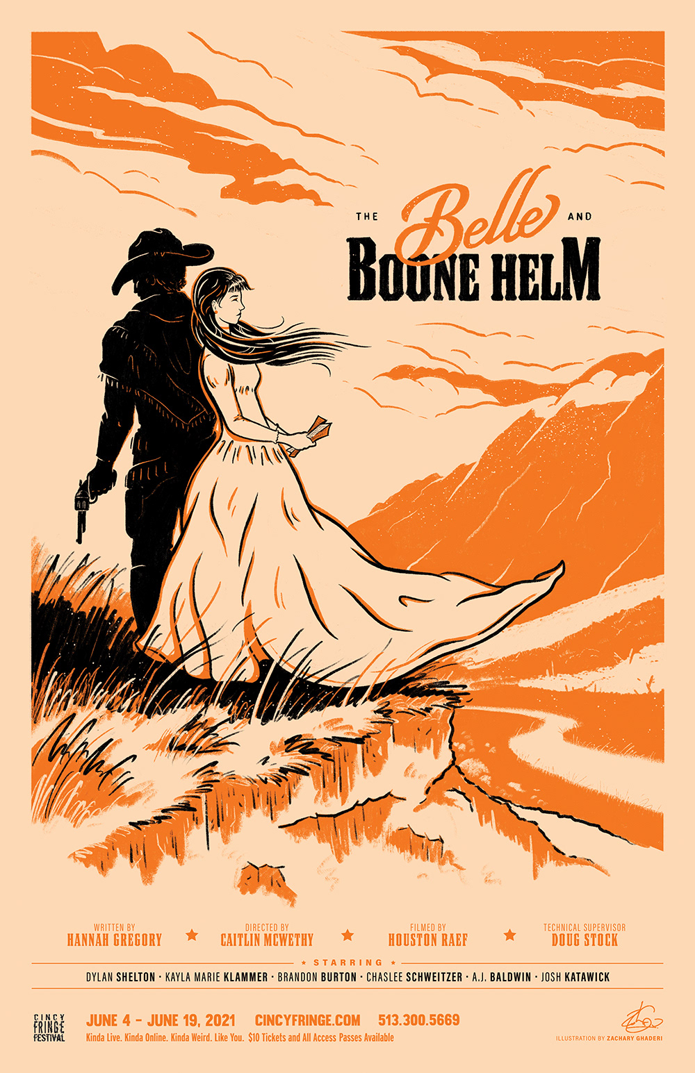 Poster illustration and design for Western theatrical film, The Belle and Boone Helm, which premiered at the 2021 Cincinnati Fringe Festival.