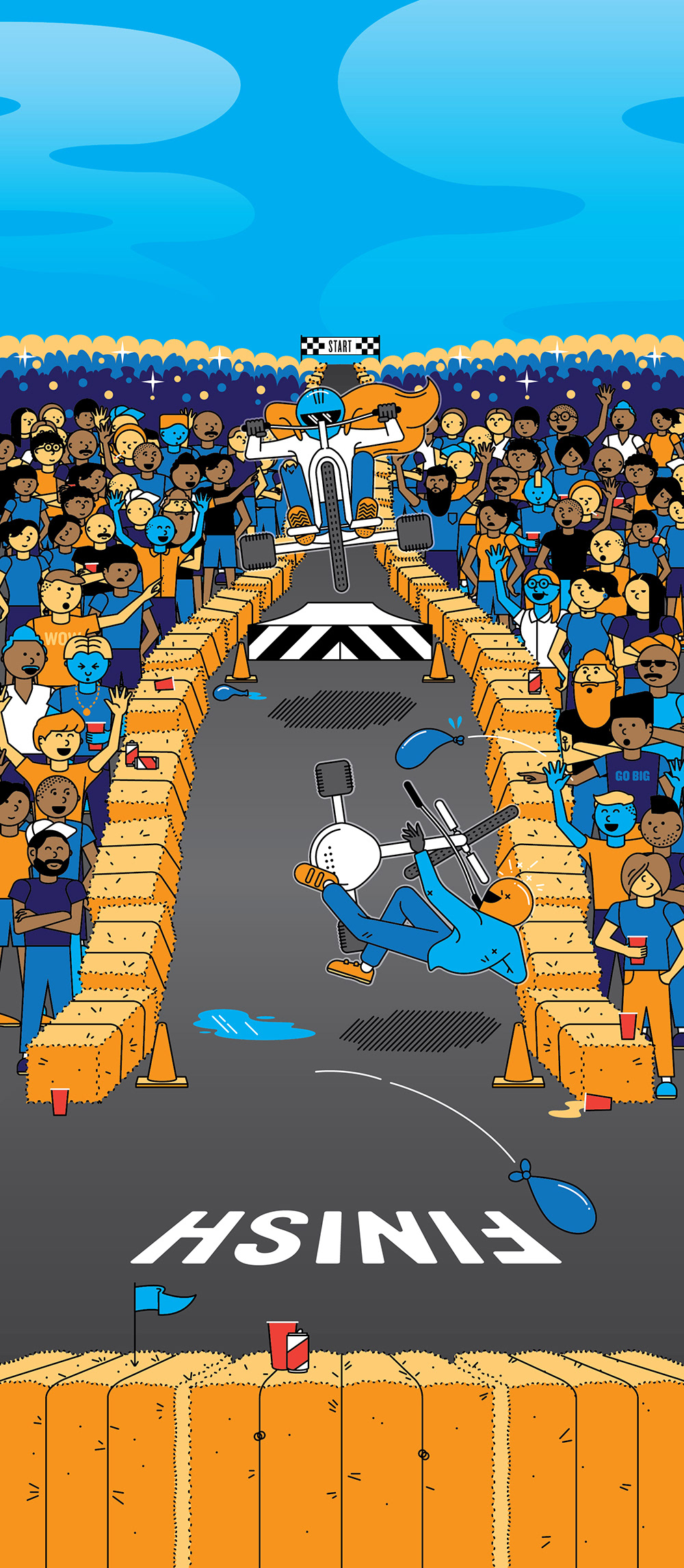 Illustration for Cincinnati Magazine's Rundown section in the July 2019 issue about Danger Wheel, a Cincinnati neighborhood's annual adult, downhill, big-wheel race.