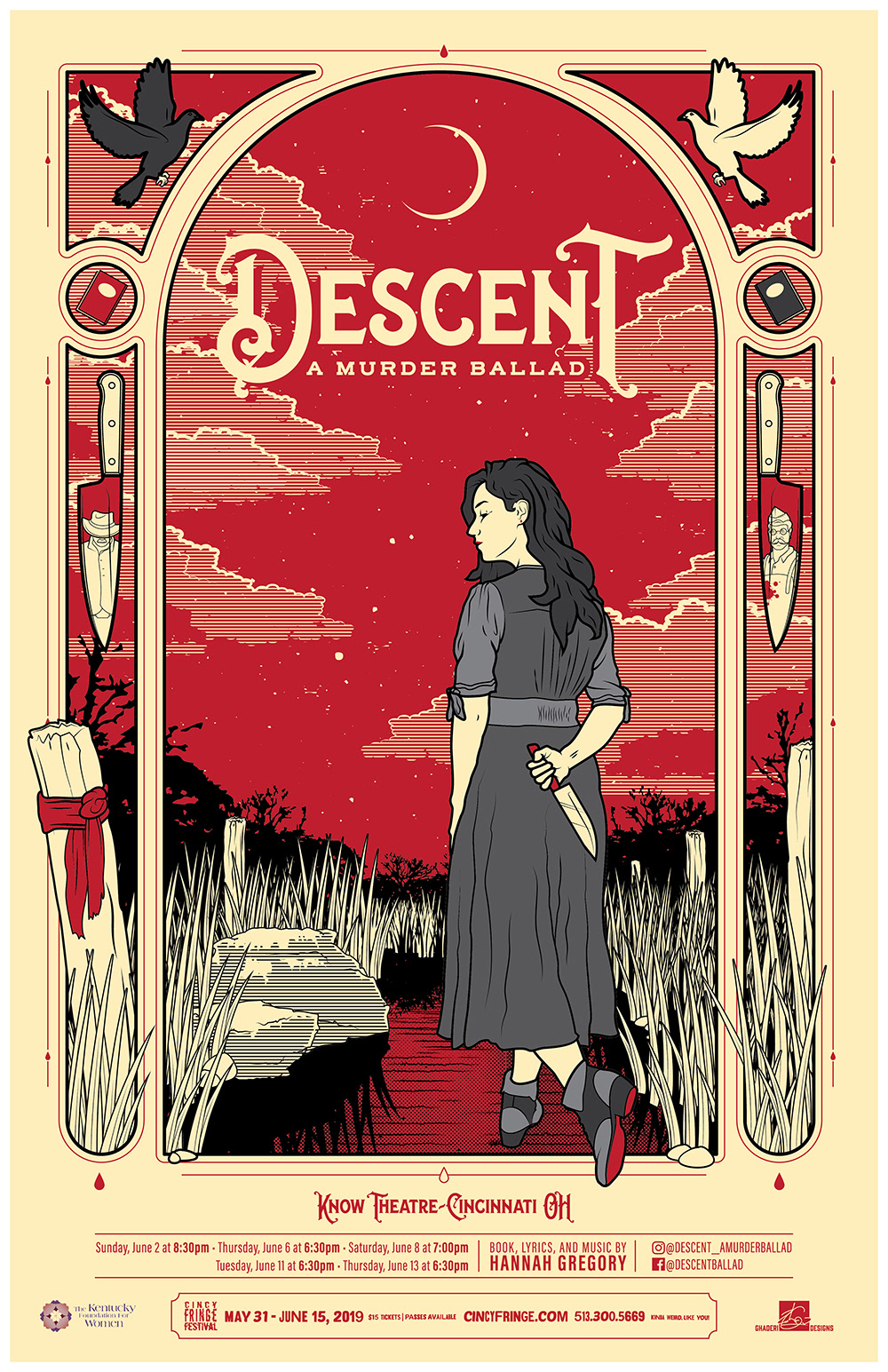 Poster illustration and design for folk musical Descent: A Murder Ballad, performed at the 2019 Cincinnati Fringe Festival.