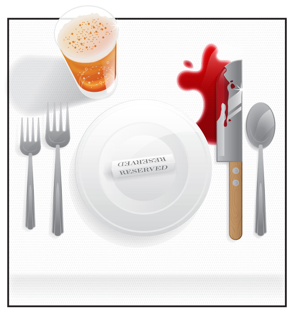 Illustration for a September 2018 article on the murder mystery walking tour and dinner published in Cincinnati Magazine.